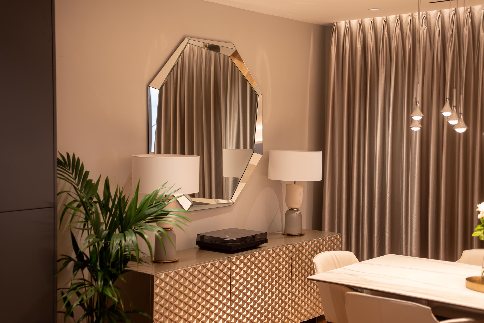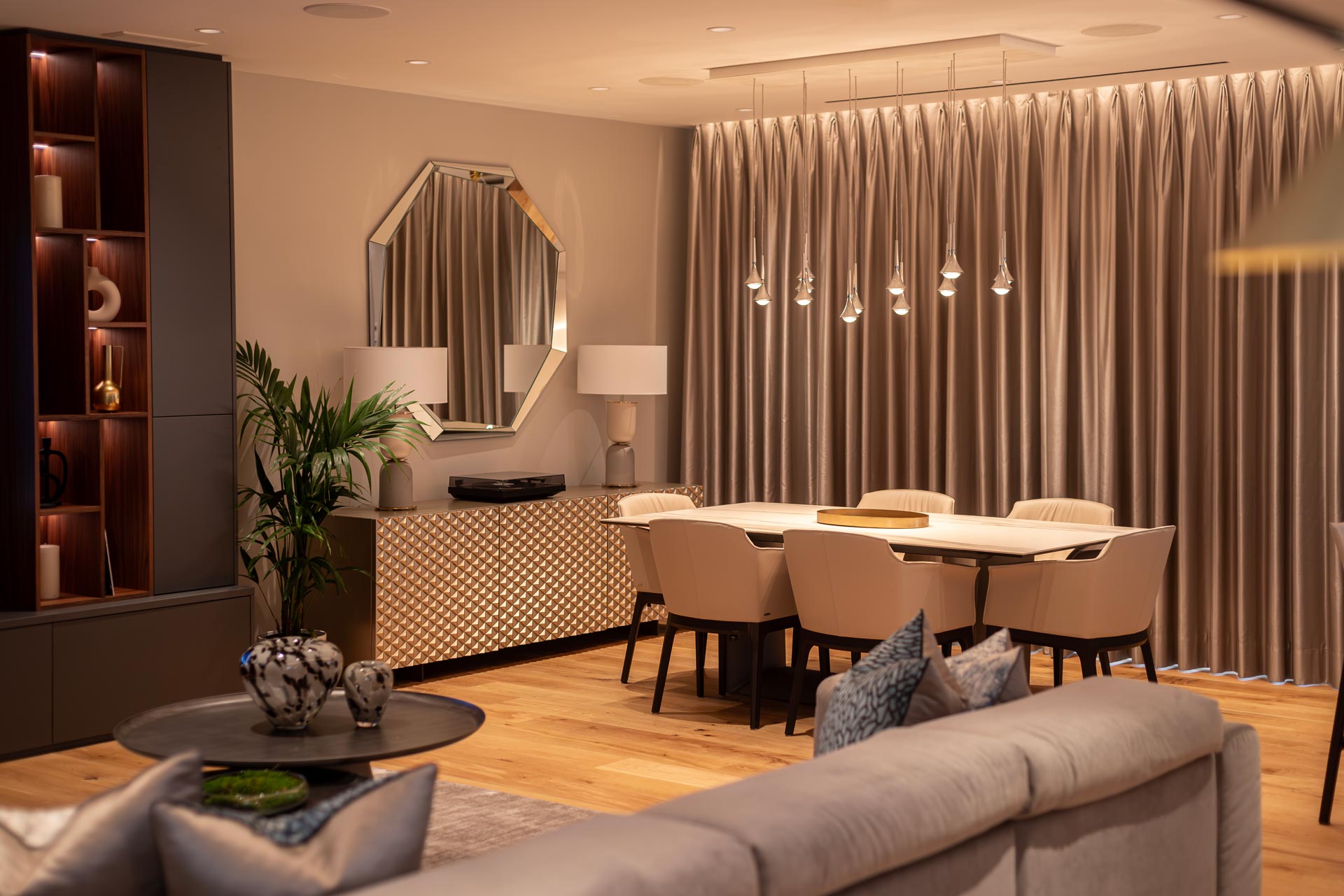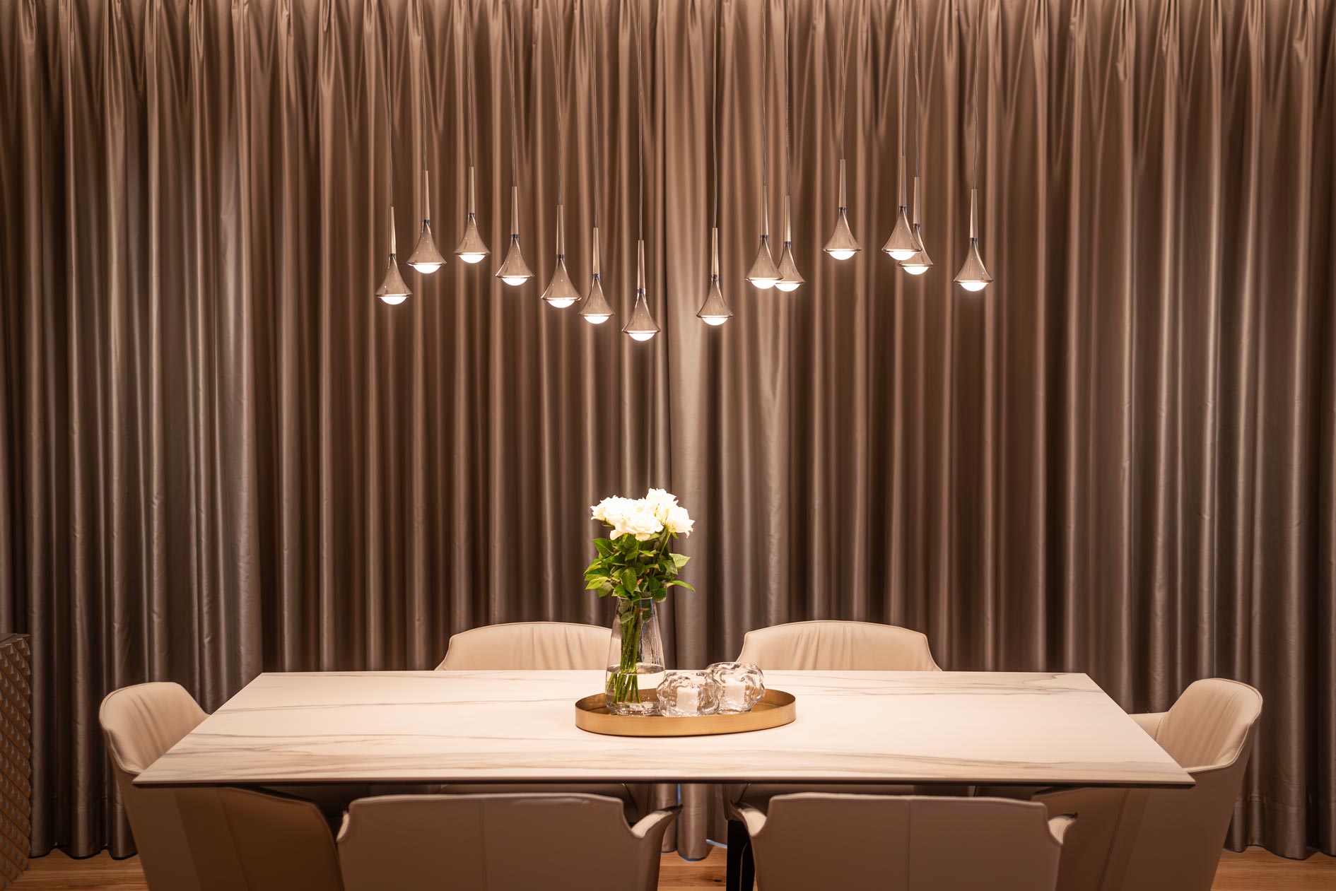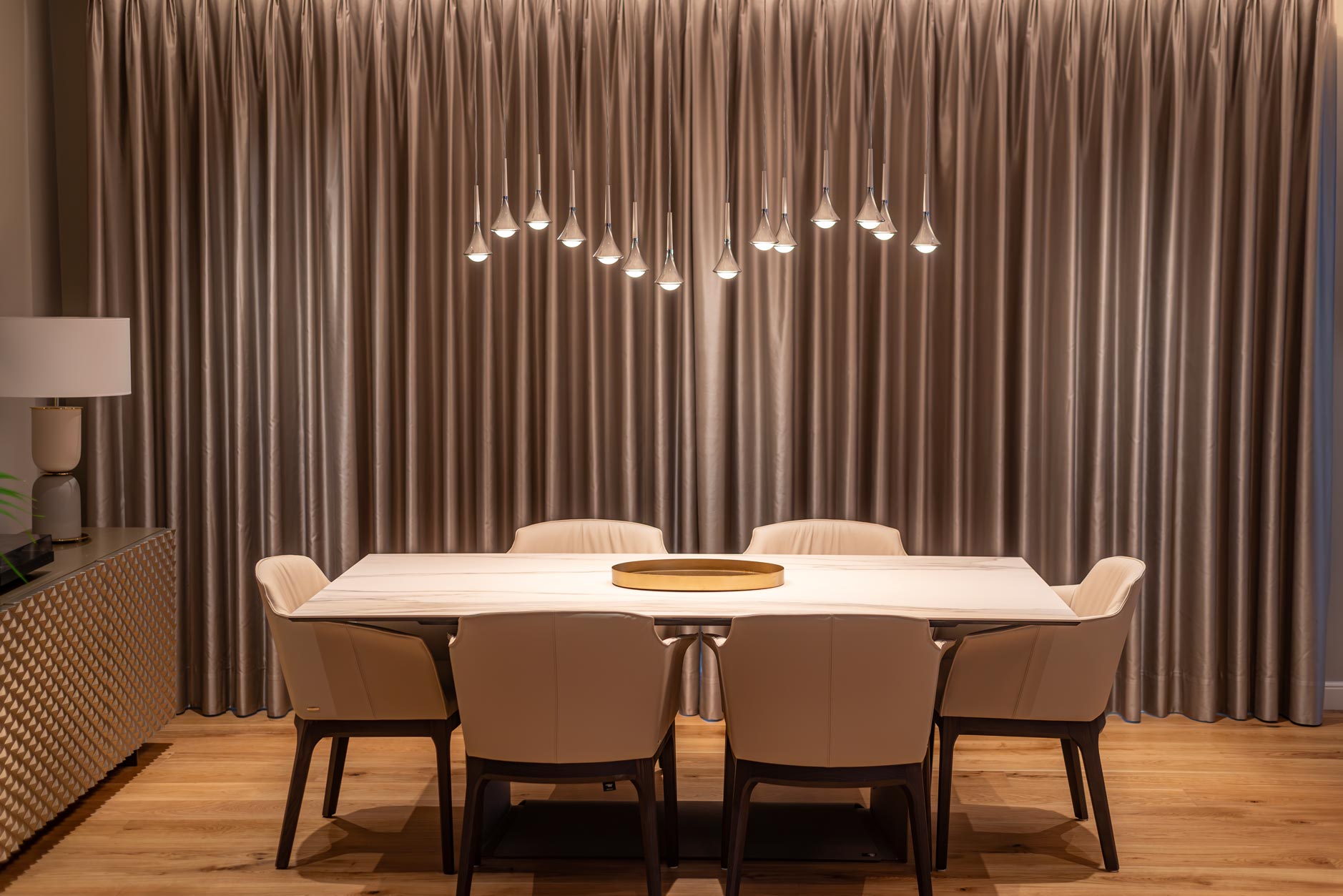 Bespoke Interior and Lighting Design with High-End Furnishings and Lighting Fixtures.