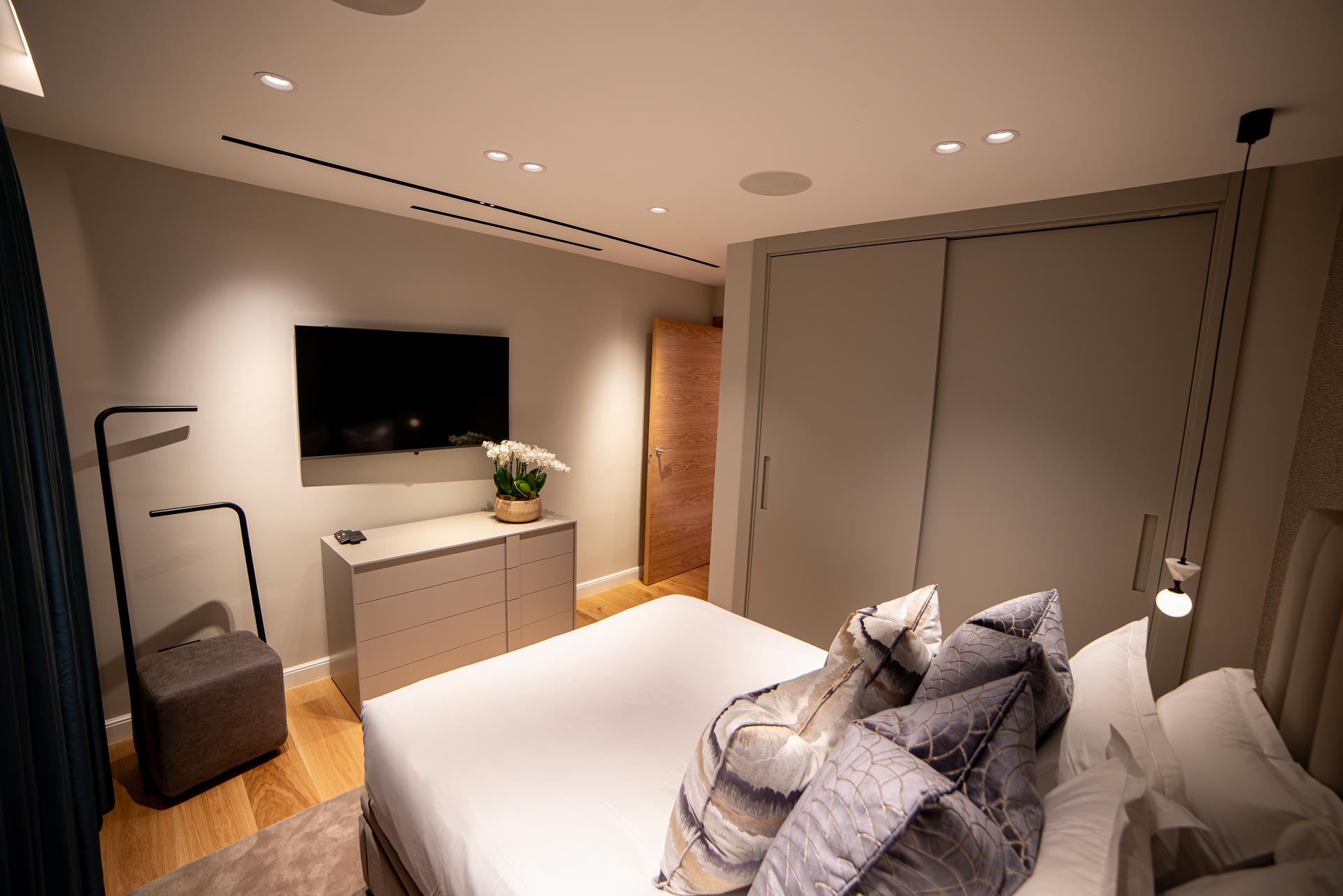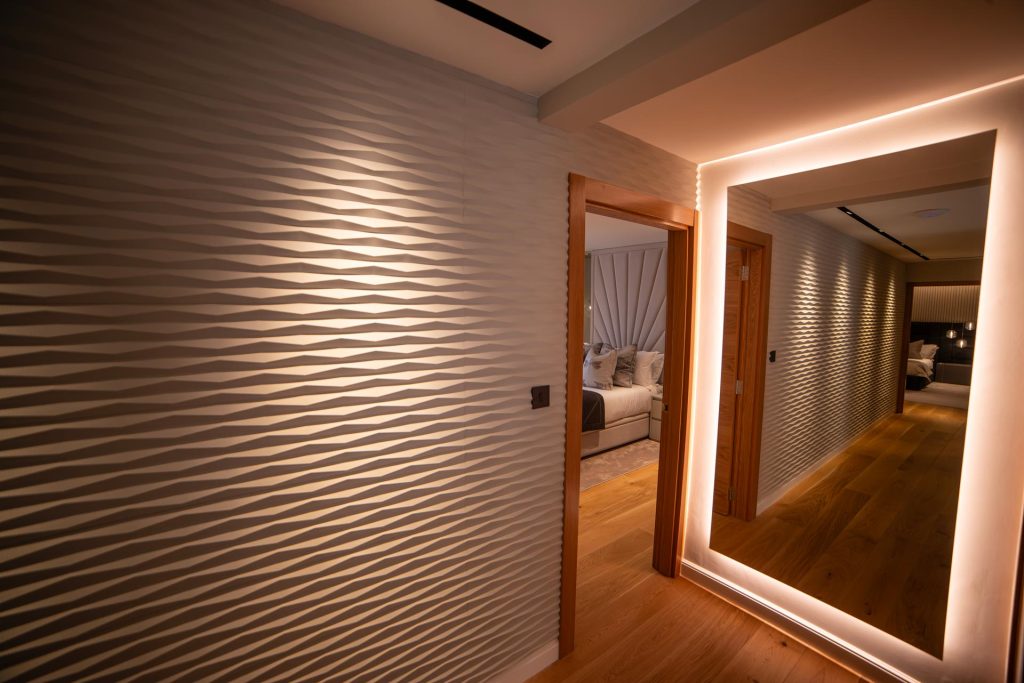 This project epitomizes luxury and sophistication, offering a bespoke interior and lighting design tailored to the most discerning tastes. Each element, from the meticulously crafted custom furniture made of the finest materials to the selection of high-end lighting fixtures, exudes elegance and opulence. Every detail is meticulously curated to create a harmonious fusion of style and functionality, ensuring an unparalleled experience of luxury living. Our commitment to excellence is evident in every aspect of the design, making this space a true masterpiece of refinement and sophistication.
